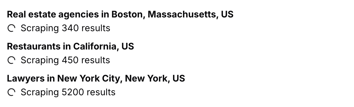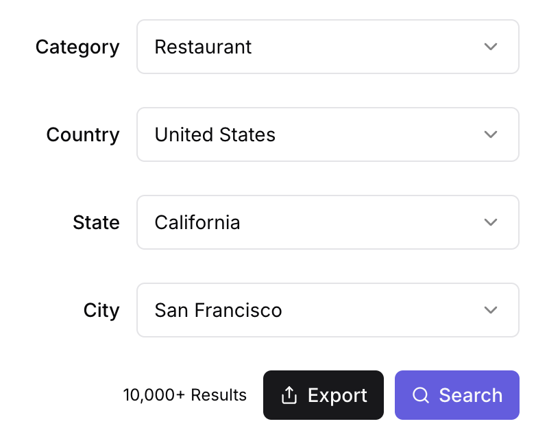Select from over 4000 Google Maps categories and precisely limit your search by country, state, county, or city in any of 200+ countries.