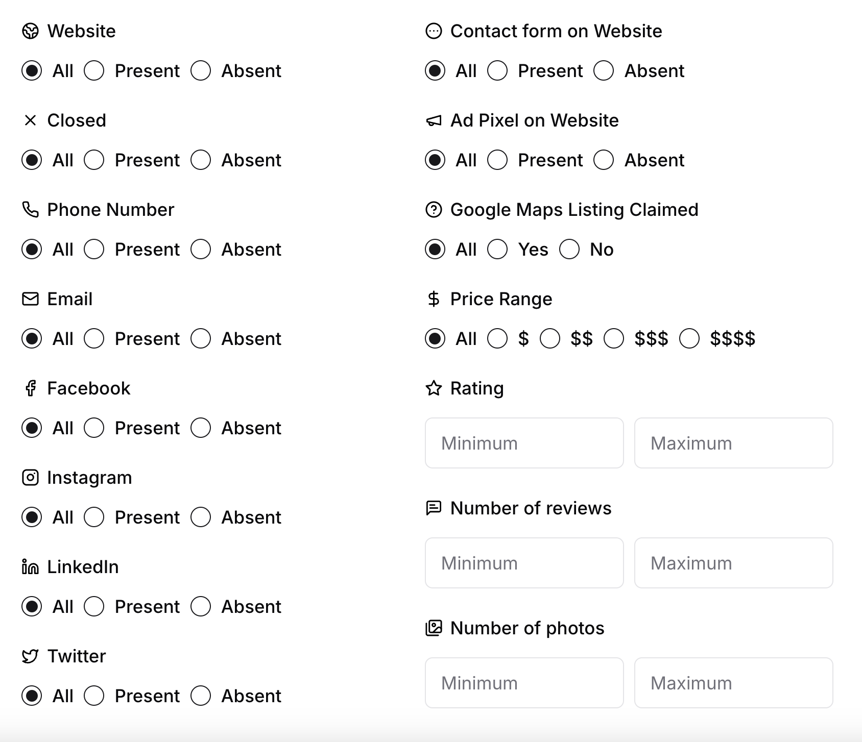 Looking to find companies that have an email but no Instagram page? Need those with Google Maps ratings between 4.1 and 5 and fewer than 10 photos?